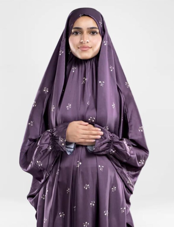 ريال قطري 235,00Arcadia two-piece prayer wear in a beautiful light purple shade. Designed for indoor and outdoor Salah, as well as Umrah, this set provides full coverage, a modest fit, and ease of movement.Azure White Islamic Prayer Wear