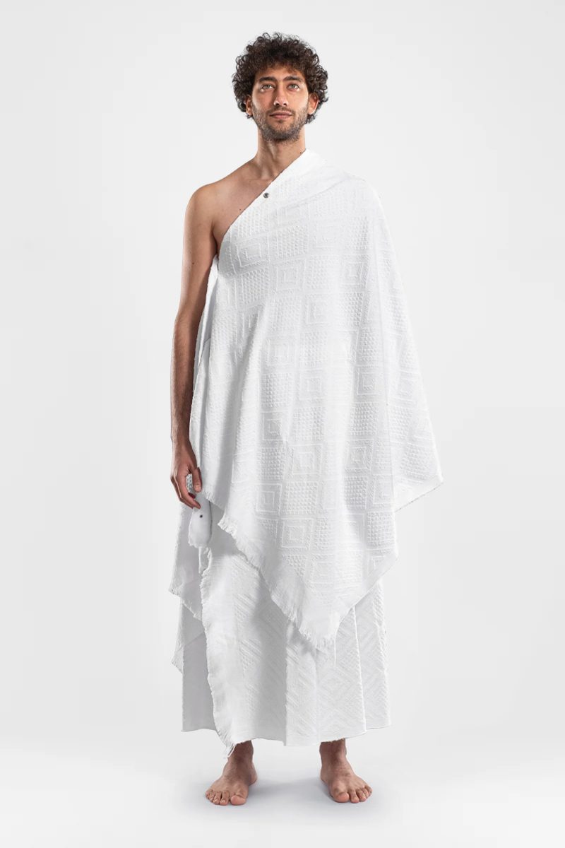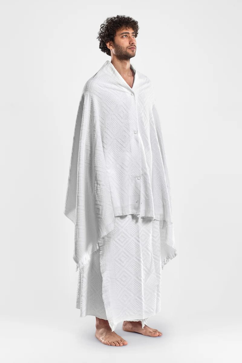 Ihram clothing Set by Arcadia is carefully designed to elevate your Hajj or Umrah experience, providing both comfort and peace of mind. This two-piece set features generously sized towels, providing excellent coverage and a secure fit. The soft, absorbent fabric ensures you stay dry and comfortable during Tawaf, Sai, and other rituals, so you can fully immerse yourself in your spiritual journey. Our Ihram Set is thoughtfully crafted to support you at every step along the way.