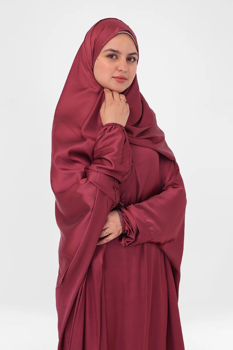 Elegant satin prayer wear designed for full coverage, effortless wear, and smooth comfort during Salah. Lightweight and flowing for ease of movement.