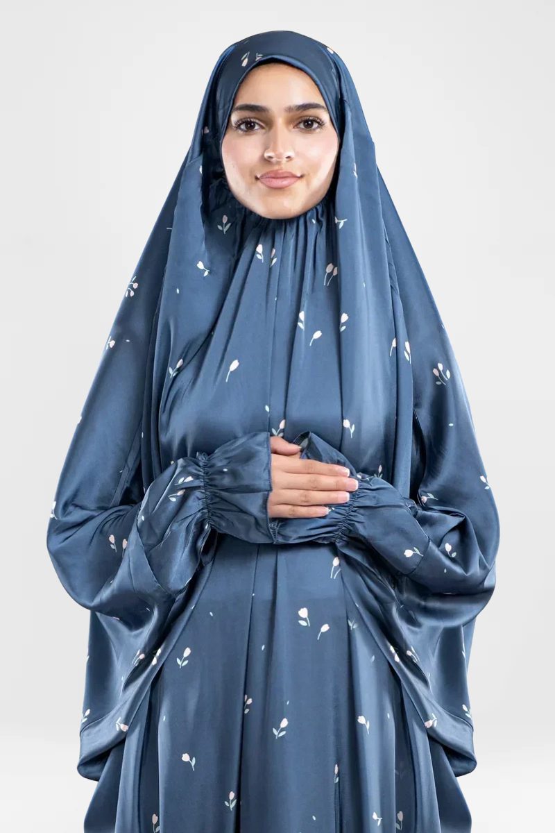 Elegant one-piece satin prayer wear designed for full coverage, effortless wear, and smooth comfort during Salah. Lightweight and flowing for ease of movement.