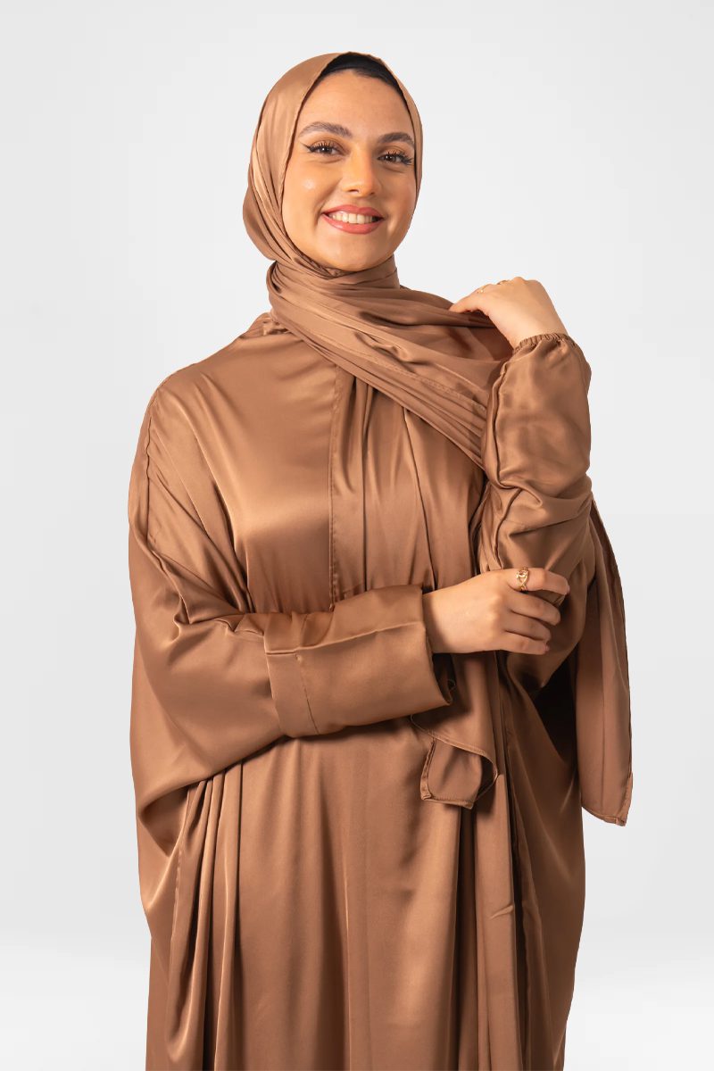 ARCADIA exquisite silk satin prayer dress, carefully crafted with the finest silk fabric. Its flowing silhouette and delicate draping create a sense of elegance and grace