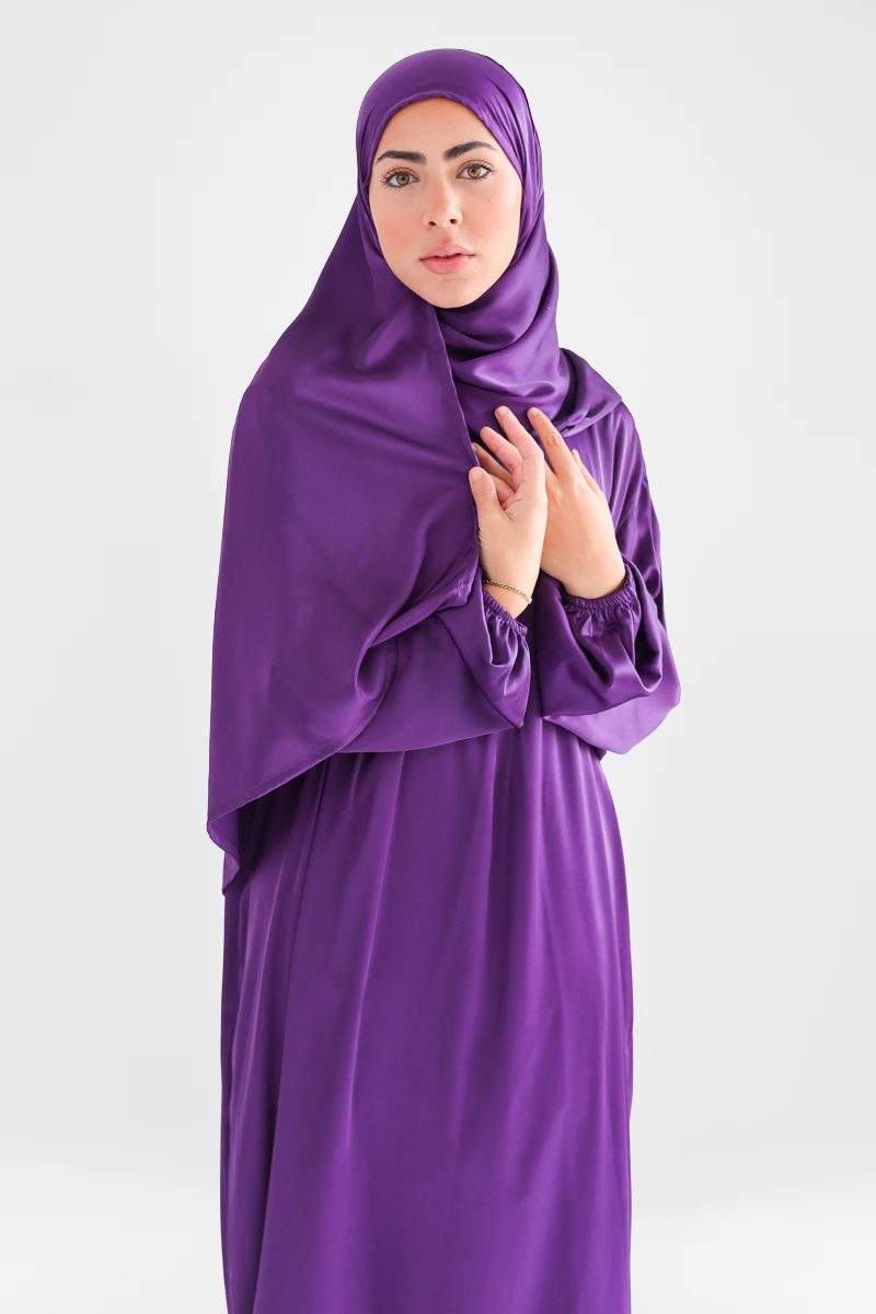 Treat yourself to the elegance and luxury of the Violet Silk Prayer Dress for both beauty and comfort.