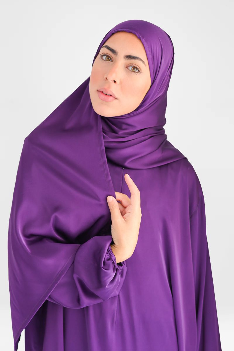 Violet Silk prayer dress Crafted from premium silk for a soft, lightweight feel. Elegant and breathable, perfect for Salah, Umrah, and special occasions.