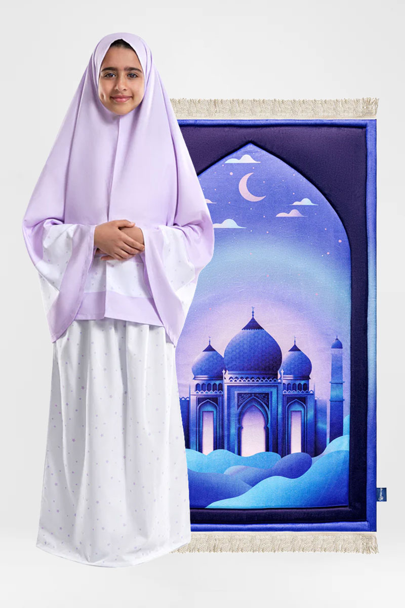 A beautifully designed Kids Prayer Set made from soft, breathable fabric for all-day comfort. Perfect for daily prayers, Ramadan, and meaningful gifting.
