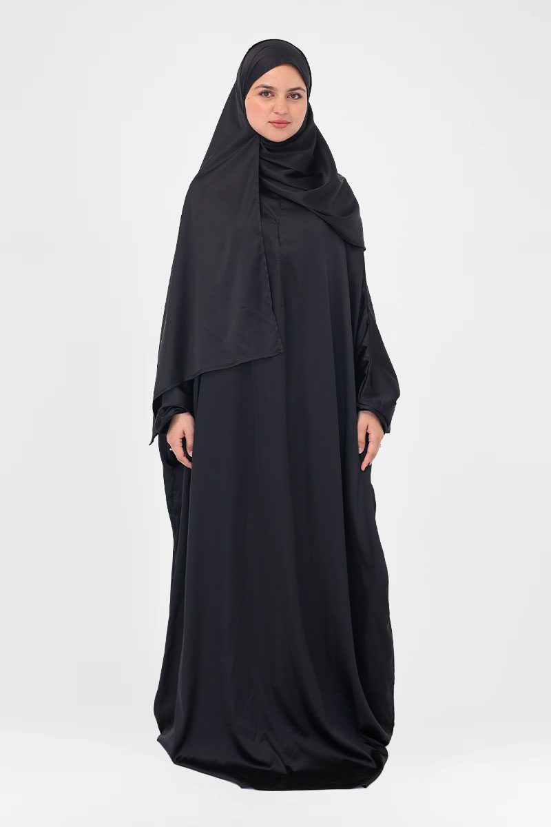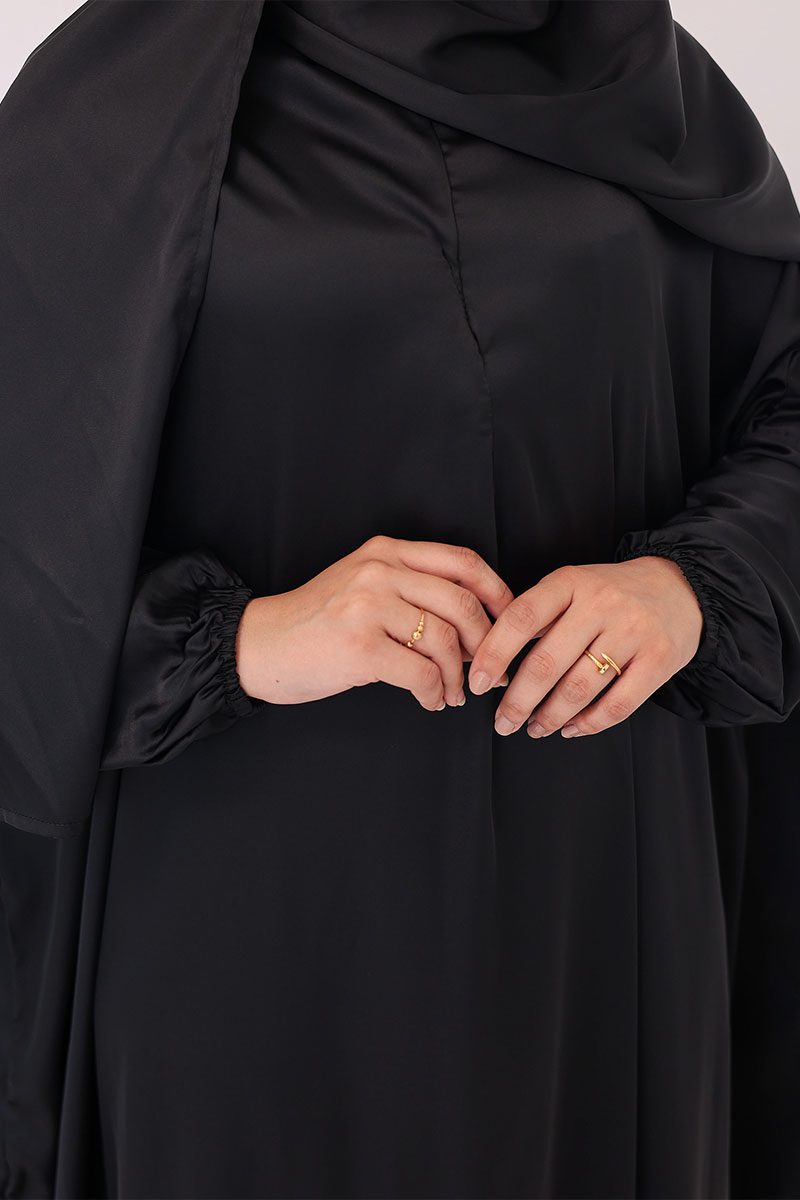Elegant satin prayer wear designed for full coverage, effortless wear, and smooth comfort during Salah. Lightweight and flowing for ease of movement.