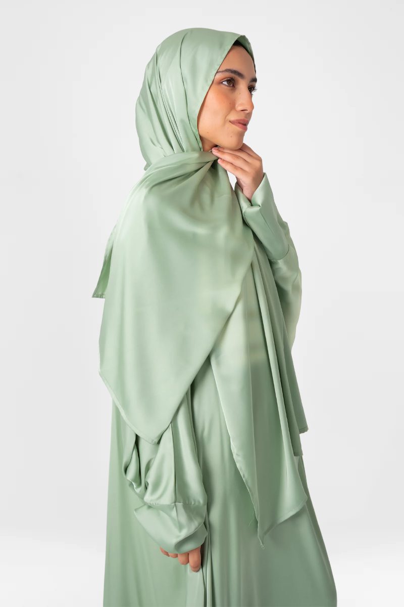 ARCADIA exquisite silk satin prayer dress, carefully crafted with the finest silk fabric. Its flowing silhouette and delicate draping create a sense of elegance and grace
