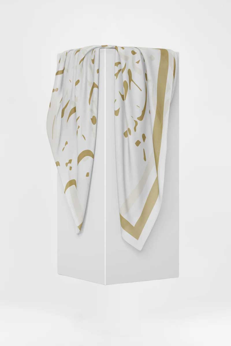 this line is inspired by the beauty of the Arabic language and the Arabic culture . Each scarf tells a story , each scarf is one of a kind. With its wording and colorful design you can’t not stand out